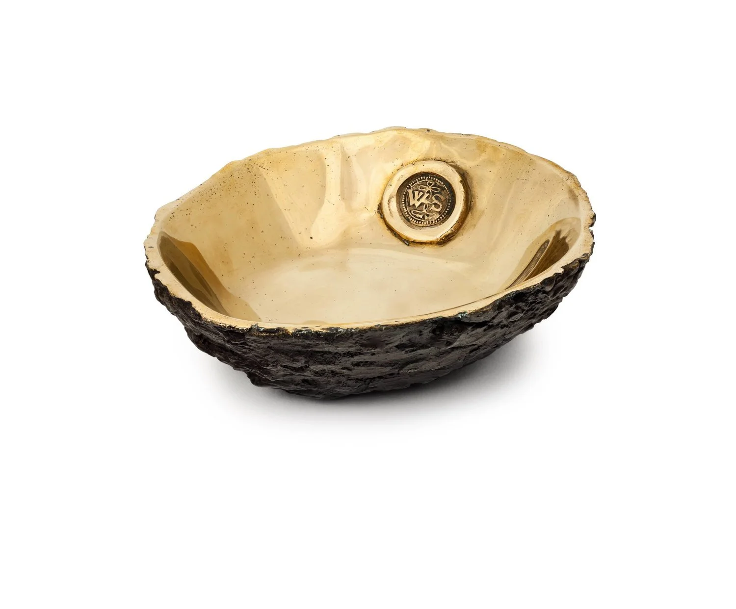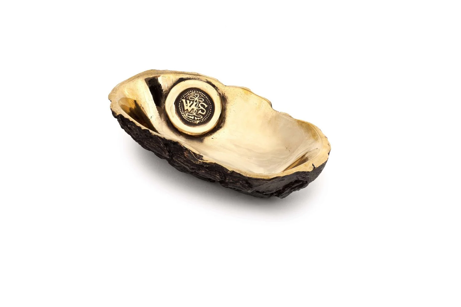 These Bark trenchers and bowls made of bronze with the exterior cast from Shakespeare's ‘His Minds Eye Tree’ Sculpture, the centrepiece Shakespeare’s New Place at Stratford-upon-Avon, are patinated to retain the tactility of natural bark, highly polished within, and embossed with the WS signet ring seal. Pieces of history re-imagined for our contemporary world. Cast and patinated at Morris Singer Foundry.